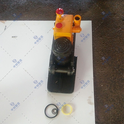 起道作业时,先扒掉少量石渣,把起道器平放在轨道床上,使起道轮伸到钢轨底部,拧紧回油阀,然后揿动插在摇动孔内的手柄,通过柱塞泵作用,将压力油注入油缸,缸体逐步上升,并借助杠杆前端的起道轮把钢轨抬起,作业完成后,打开回油阀,在钢轨重量是作用下,油缸复位,此时可将起道器取出。如果在松软的道床上作业,机具下沉量较大,可在机具的下面垫钢板或木块。在使用中应注意的事项有以下几点:
