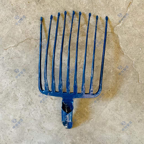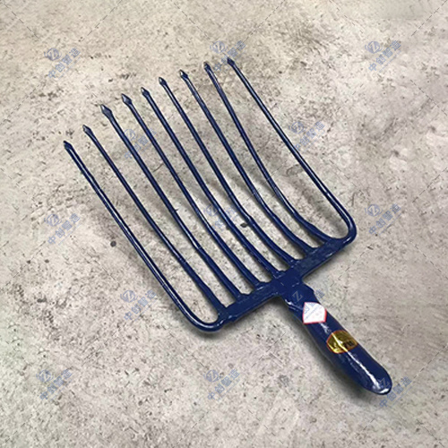 九齿钢叉是指九个耙钉的耙,又名九齿叉和九股钢叉,主要用于修筑铁路,矿井,矿山开采等工程, 是一种实用性的小工具!用于道床坡脚石碴整理,道床边坡整修,收集散碴和杂草清除等作业。钢叉由九齿徘列成锹状。