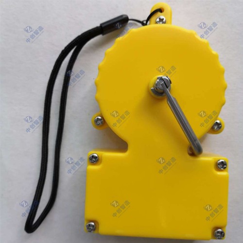 测量盒设计小巧、轻便、美观易携带,盒体为黄色耐磨型ABS原料制成,操作方便。在测量盒的前端置放两个长方块强力磁铁。(该磁铁由丝线相连可吸附于钢轨侧面做为定点测量点,将丝线拉紧测量即可方便得出曲线的正矢值》。盒内后端设置手动绳轮,可将20米以上的线摇入盒内或从盒内放出,为满足需求设计有20米、30米、40米50米等规格的产品
