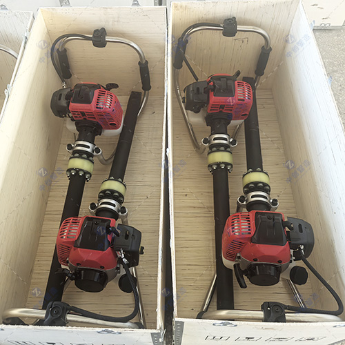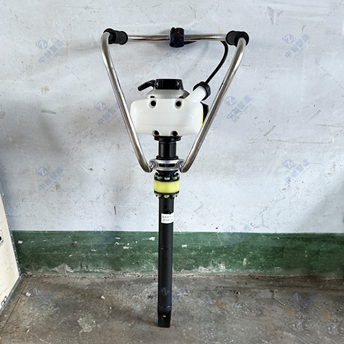 4、休息时间较长或不用时,应将捣固镐手把朝下平放于地面上,避免摔碰汽油机。