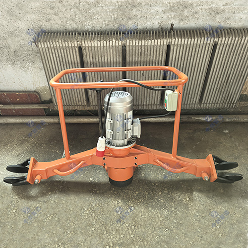 电动钢轨打磨机,以电动机为动力(回转运动),通过电机传递给杯型砂轮使其产生回转运动,同时通过一个能转的手轮来调整砂轮的进给量,从而达到打磨钢轨的目的。